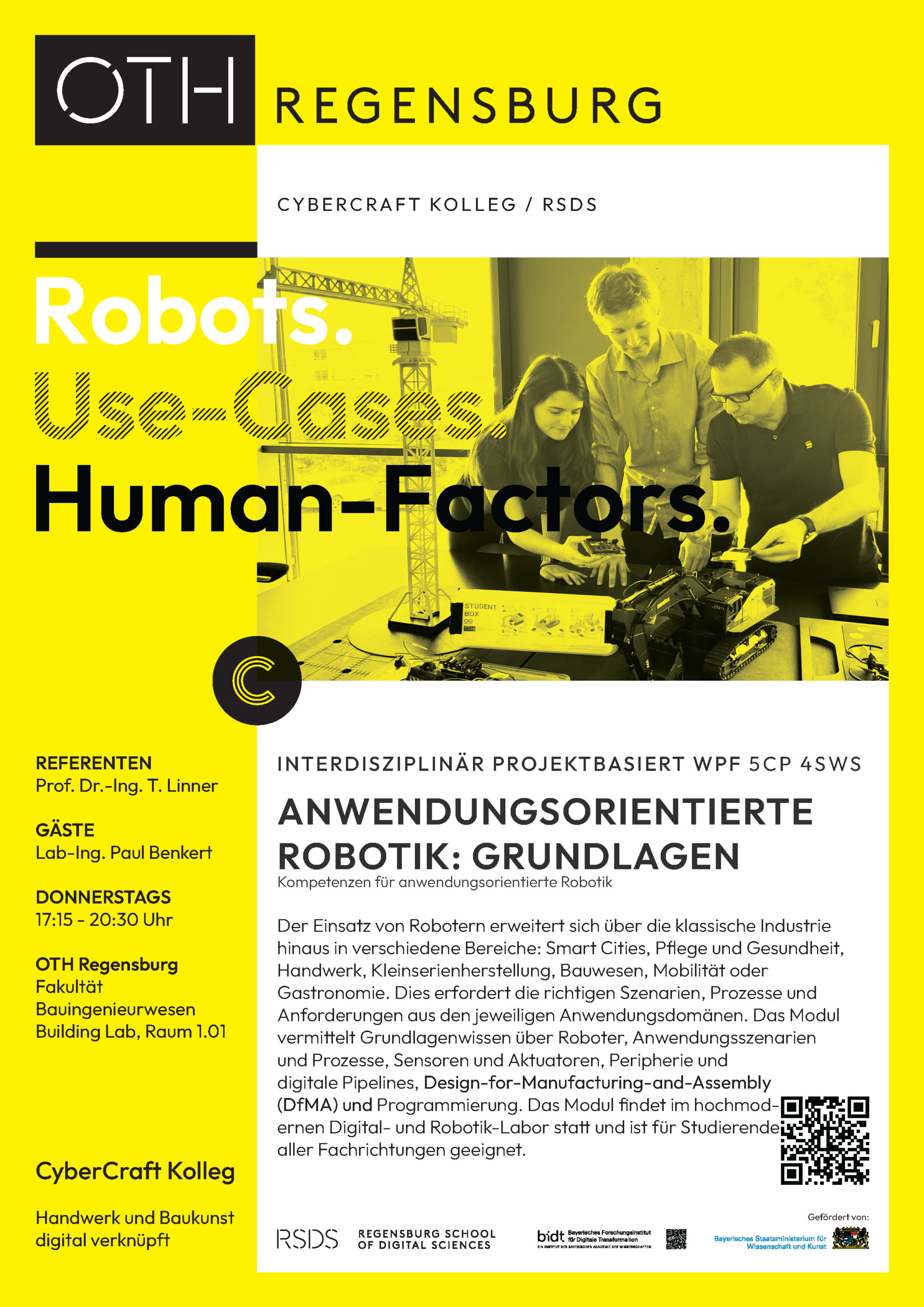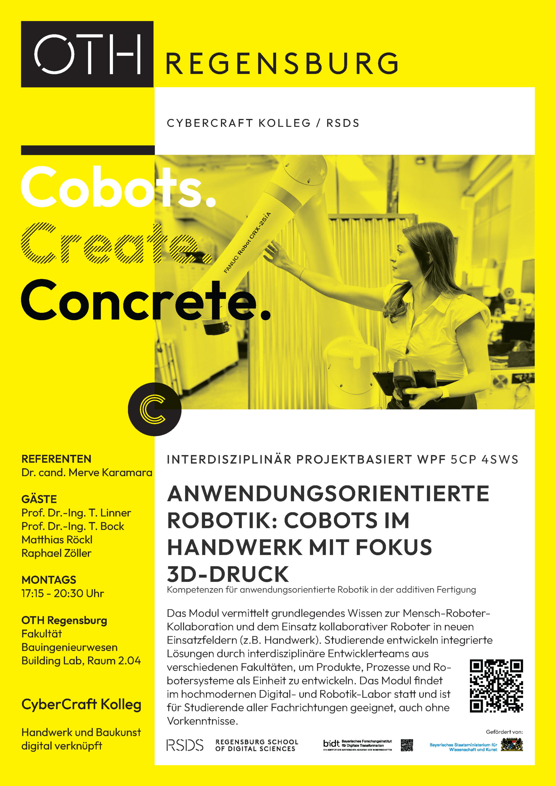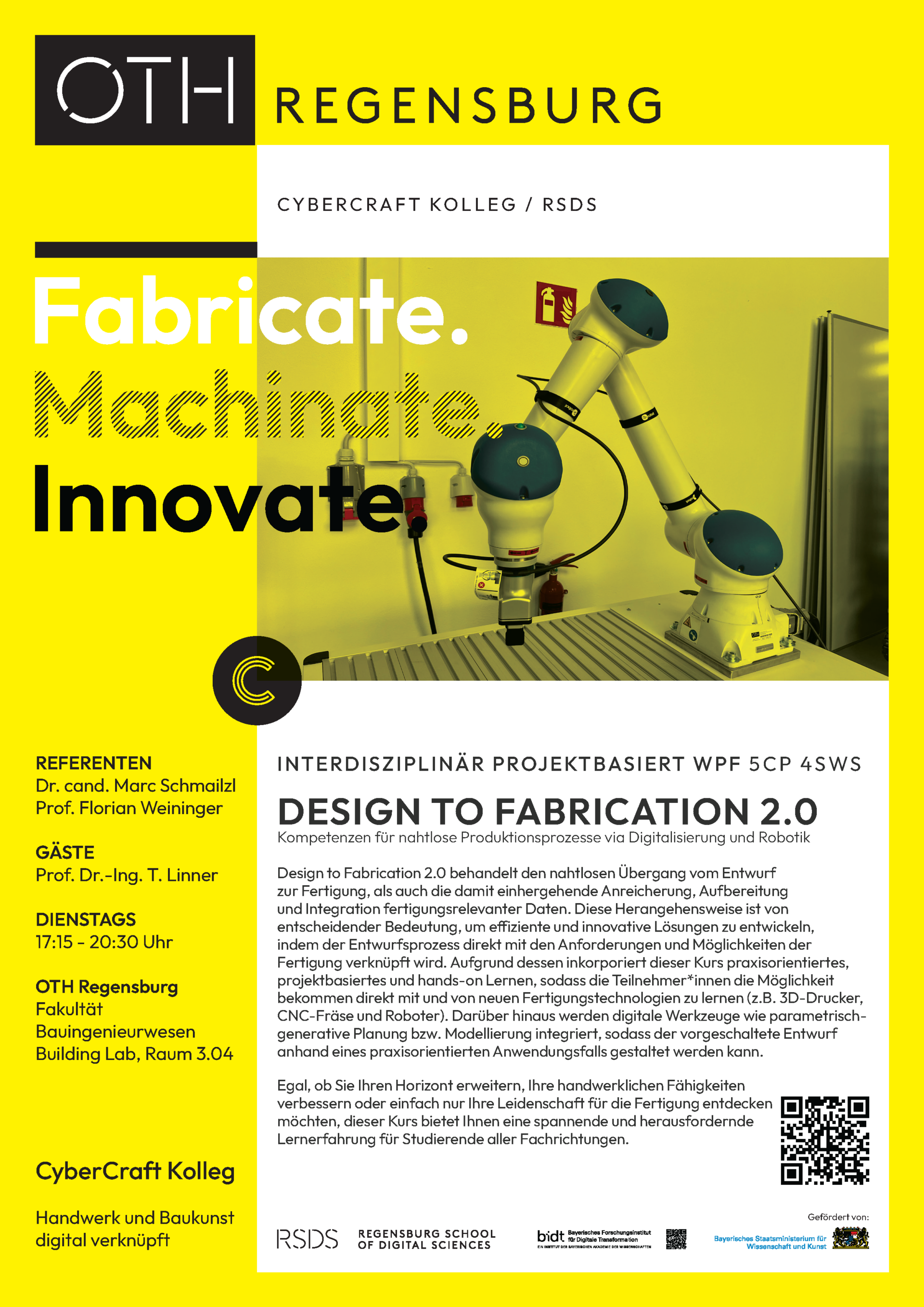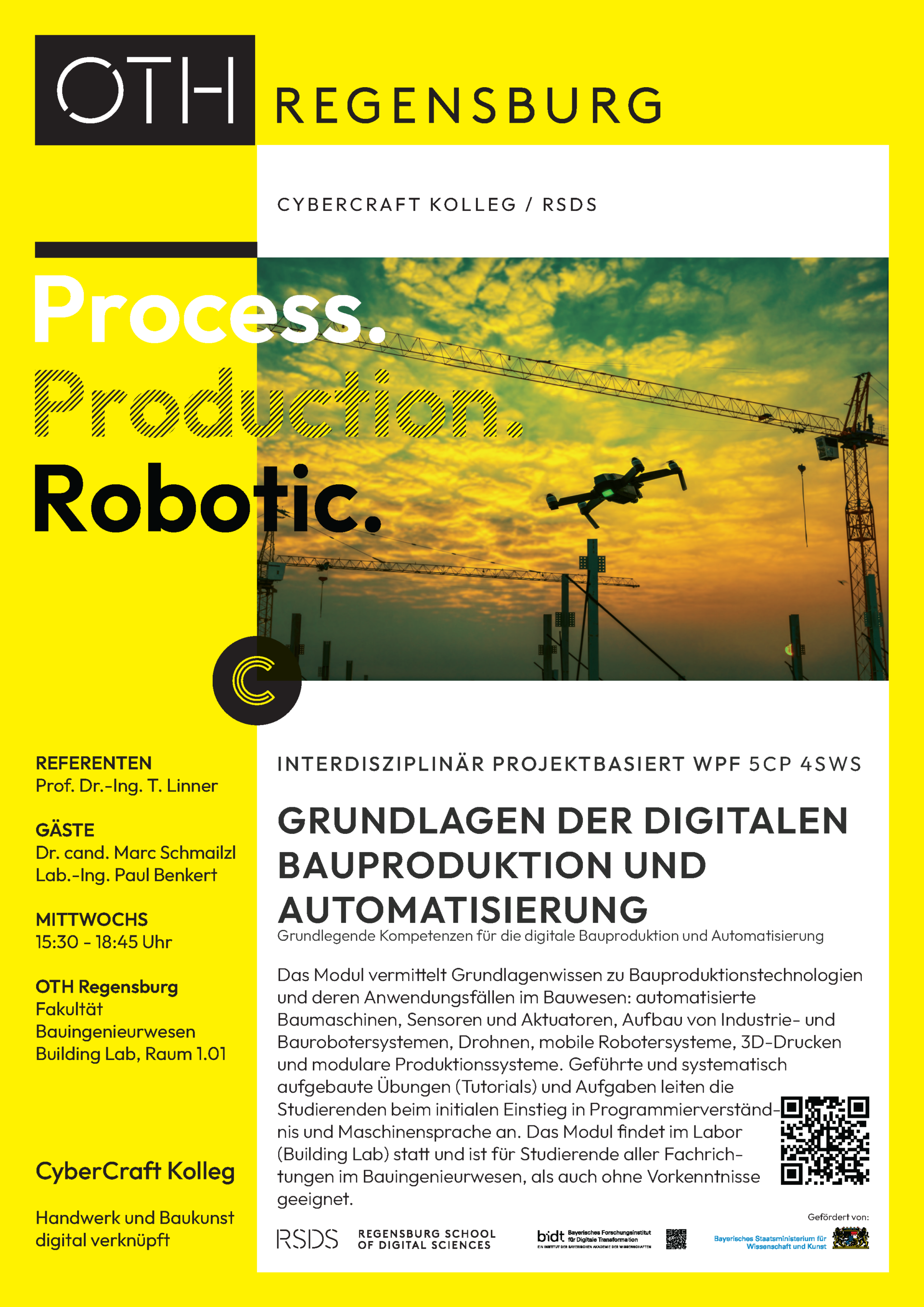 The following courses are offered by the CyberCraft College at the Faculty of Architecture, Faculty of Civil Engineering and Regensburg School of Digital Sciences (RSDS).